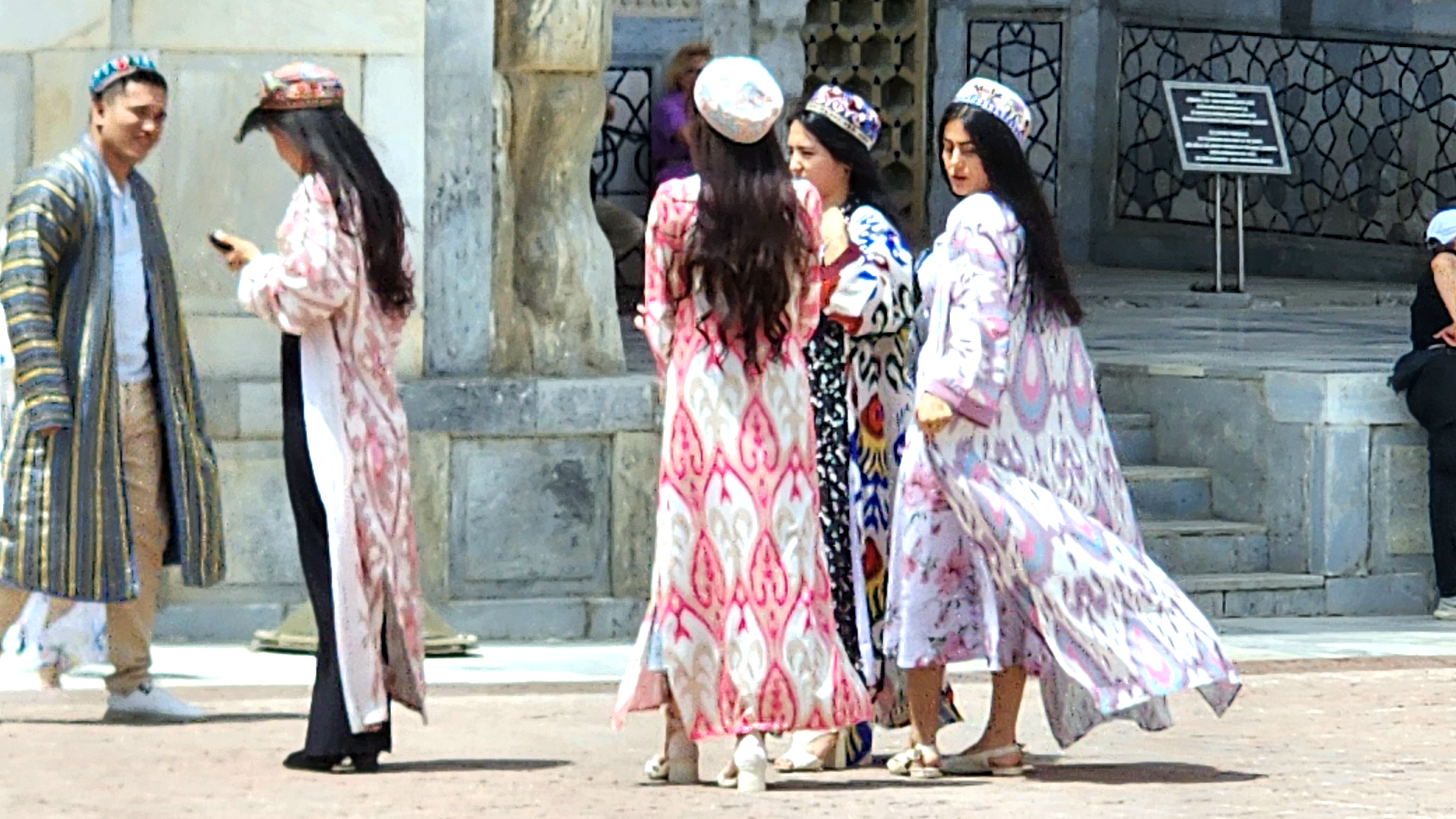 왕궁터 끝 지역은 기념품을 파는 상업지역과 예배를 올리는 종교지역이 함께 몰려있는 레기스탄 광장이다. 여기서 한창 화보 촬영중인 이국의 여인들과 포토그래퍼의 미소가 환했다.