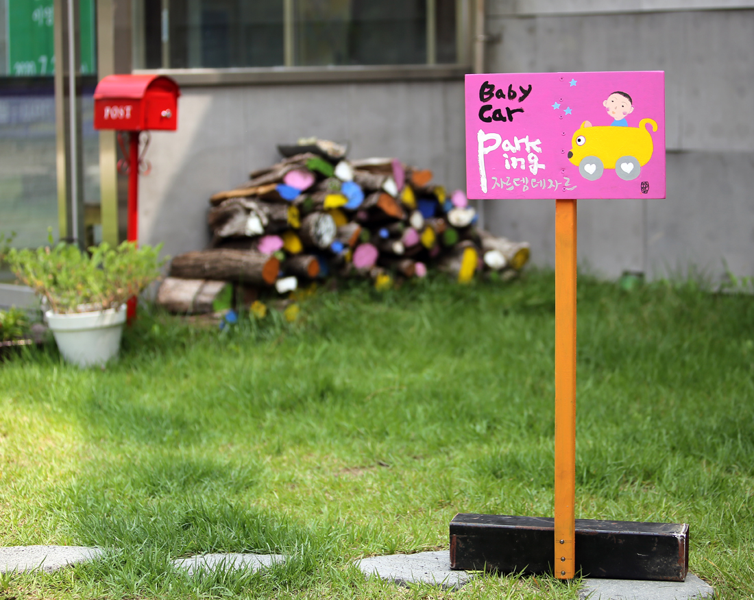 카페 자르뎅데자르 유모차 주차안내판과 내 친구 봄비 농장 현판이에요^^