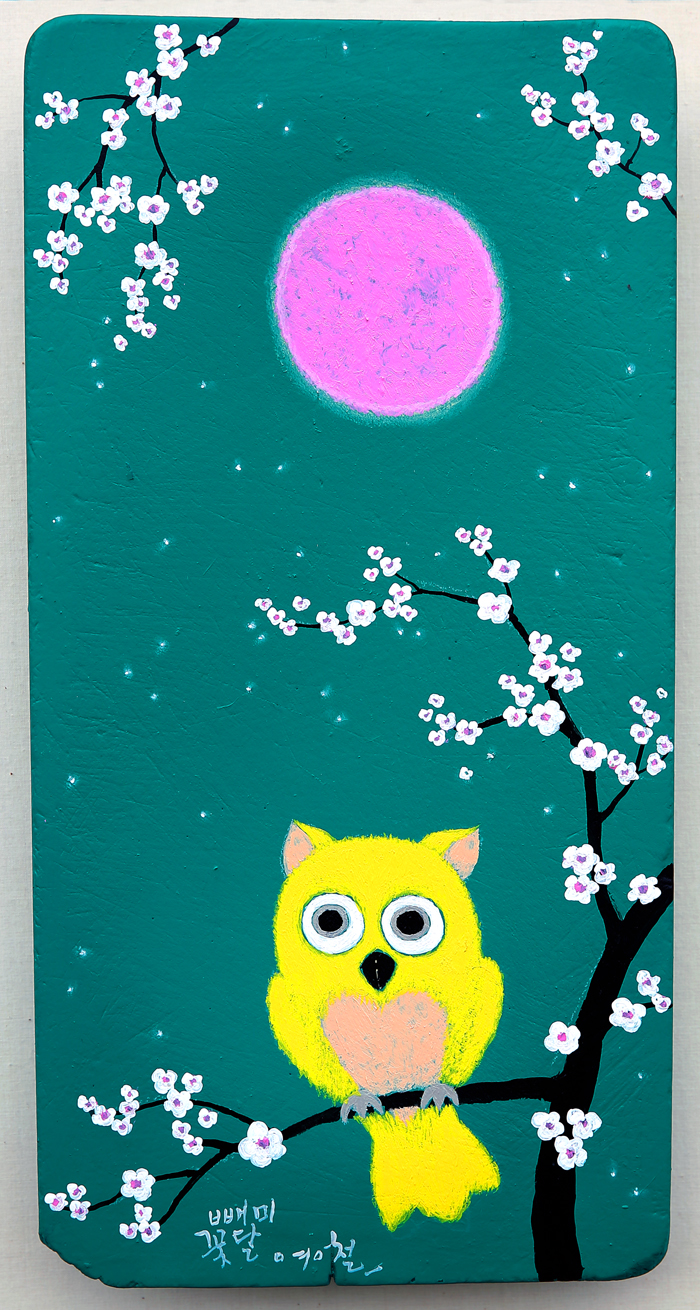빼미꽃달 / 23.5cm x 45.5cm, acrylic on wood. 2020