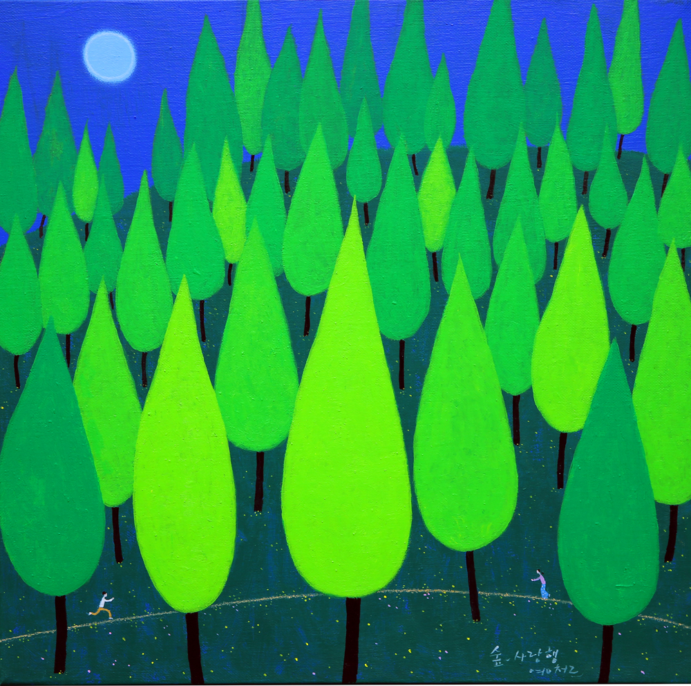 숲-사랑 행 / 45.5cm x 45.5cm, acrylic on canvas. 2022